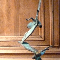 Dans les matériaux d’abord : Bronze, Bois , Métal, Pierre reconstituée, … il mélange habilement les matériaux en exploitant au mieux les qualités de chacun.